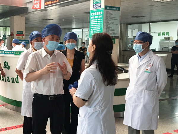 7月23日上午,省疫情常态化防控和“回头看”第五督察组副组长牟景君一行在副市长朱清霞、红岗区委书记巴小东、副区长沙琳陪同下,对市第二医院疫情防控工作进行了检查指导。医院院长、党委副书记、感染监控科科长李永刚,党委书记刘凤君,副院长许洪明,副院长刘景龙,纪委书记刘顺文,副院长邵颖及相关科室负责人迎检。
