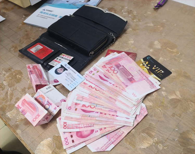 8月26日11时,杨女士陪同爱人于先生到大庆市第二医院感染科就诊,不慎将钱包丢失在诊室外的候诊椅上。感染一科主任医师高翔发现后,打开钱包查看里面除了身份证、多张银行卡和一张欠条外,还有数千元现金,他立刻前往大厅寻找失主未果,考虑到自己正在出诊,便连忙向门诊党支部书记韩淑杰报告了此事,赶紧回到了岗位。韩淑杰立刻放下手中工作,按身份证信息从就诊登记处找到了失主爱人的手机号码,随即取得了联系,当时失主已离院。