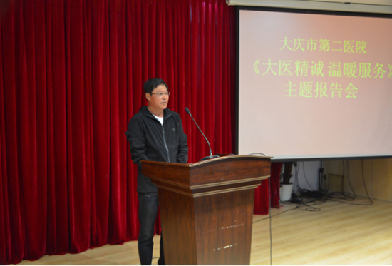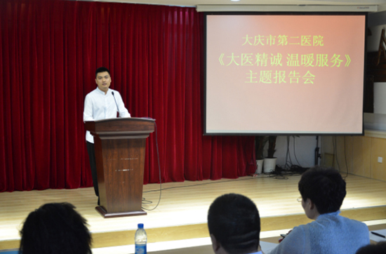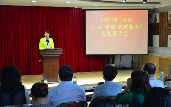为深入推进大庆市卫计委关于开展“转作风 优服务 惠民生”主题活动,进一步改进思想工作作风,严格遵纪守法,树立良好医德医风,弘扬清风正气,6月21日下午,我院举办了“大医精诚 温暖服务”主题报告会。此次报告会得到了院党政领导的高度重视和大力支持,院长、院党委书记佘纯带队的7位院领导班子成员,莅临报告会现场并以评委身份对本次报告会进行了评分指导。